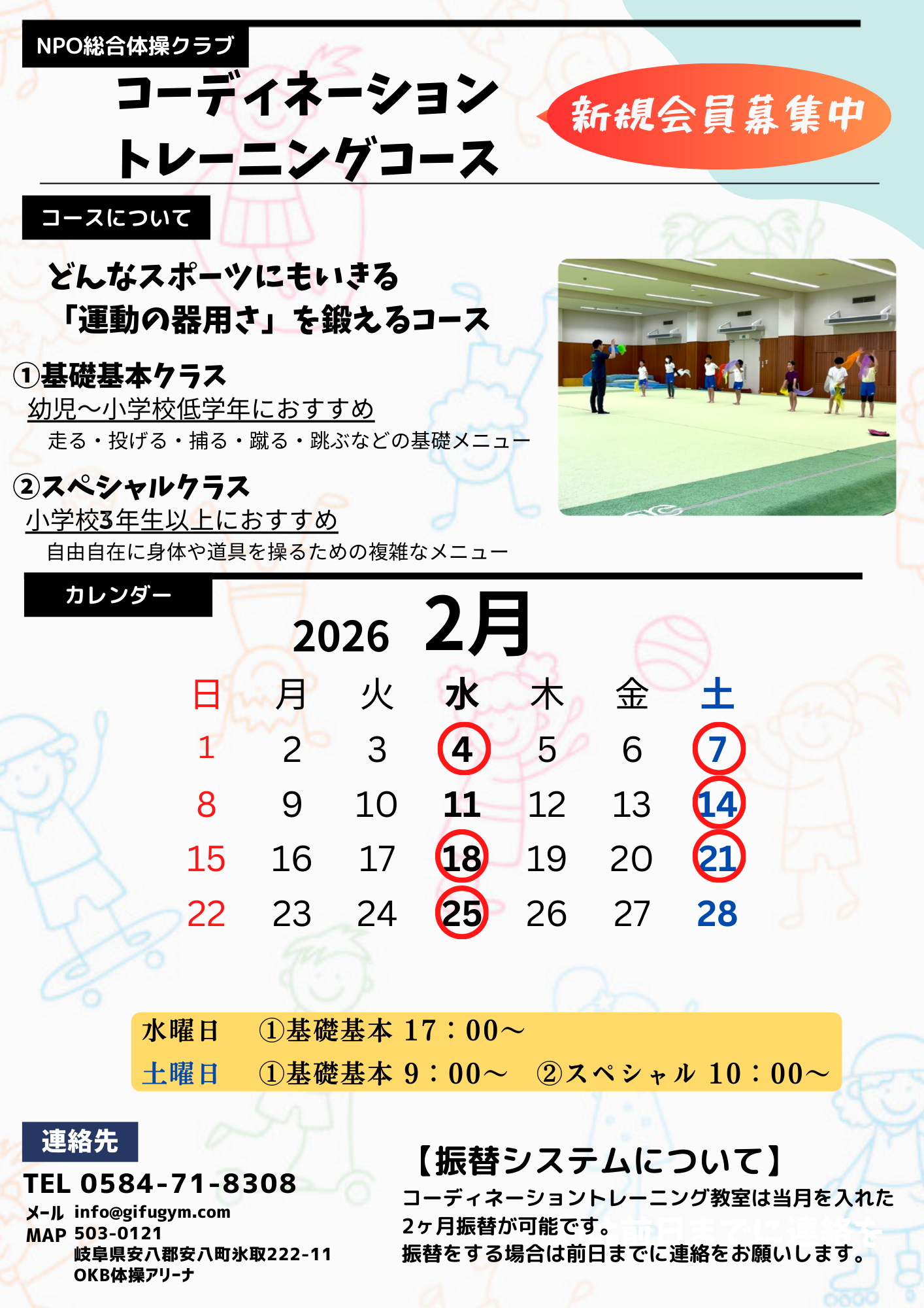 令和7年12月、令和8年1月コーディネーショントレーニング予定表